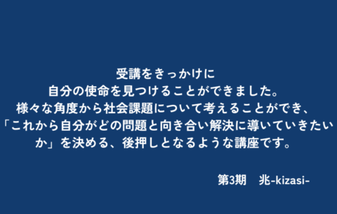 これまでの受講生の声 第13期 是永桂 2025.10.25 2025.11.15 Post Share Hatena Line RSS feedly Pin it note 自分1人の行動を変えるだけではソーシャルインパクトが小さく、周囲に伝えていくのも大変でした。受講して自身の知識が増え、同じ志を持つ仲間ができたことで、次のアクションの選択肢が増えたと感じます。 記事のタイトルとURLをコピーする 第3期 桜華純子 前の記事 第8期 Rena Jinno 次の記事