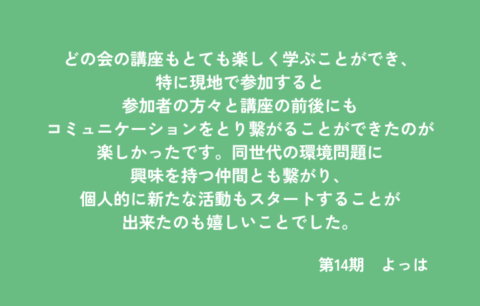 これまでの受講生の声 第8期 Rena Jinno 2025.10.25 2025.11.15 Post Share Hatena Line RSS feedly Pin it note 学校では教えてくれなかった「エシカル」を、幾つものテーマで、毎週の講座を通してじっくり学ぶことにより、多角的な視点でエシカルについて考えられるようになりました。 記事のタイトルとURLをコピーする 第13期 是永桂 前の記事 第8〜13期 平井真美子 次の記事