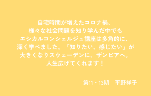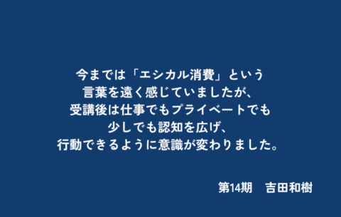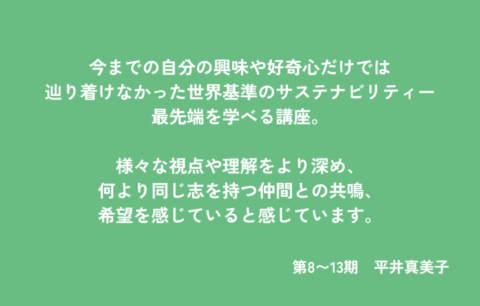 これまでの受講生の声 第3期 緒方葉月 2025.10.25 2025.11.15 Post Share Hatena Line RSS feedly Pin it note 自身でエシカル事業を立ち上げ、現在も続けていられるのは、エシカルの基本や社会・環境問題についてこちらの講座で学ぶことができたからです。受講後はエシカル仲間も沢山できました。協会さんの雰囲気も好きです! 記事のタイトルとURLをコピーする 第6期 小林美貴子 前の記事 第5・9期 大信田千尋 次の記事