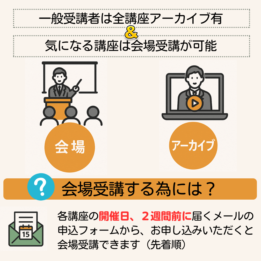 受講形式: 対面(東京)とオンライン(アーカイブ配信)